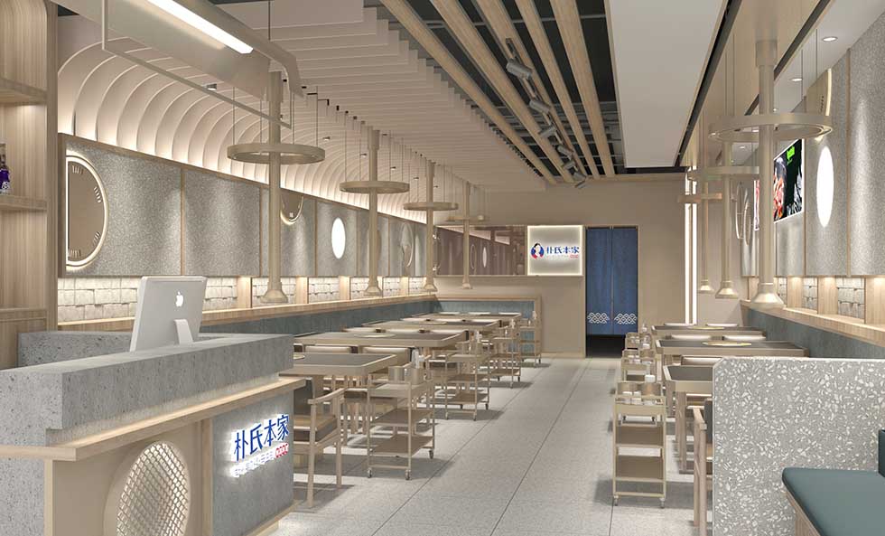 項目背景:樸氏本家是一個以炭烤五花肉、特色湯鍋、風味拌飯等為主的家族傳統(tǒng)韓國美食。艾的爾設計承接其品牌VI設計,成立品牌VI設計小組7人:品牌總監(jiān)1名、設計總監(jiān)1名、資深設計師4名、文案策劃1名。了解品牌的本質(zhì)需求、商業(yè)目的、目標消費群體審美偏好、行業(yè)與品類特性及品牌文化。本方案圖形家文字的組合方式詮釋品牌LOGO,圖形部分是一個微笑服務的韓國傳統(tǒng)婦女的形象,有著韓國的傳統(tǒng)發(fā)型、韓國的傳統(tǒng)服飾、頭上戴著韓國的木槿花,代表著樸氏本家做的韓國料理歷史傳承悠久,極具傳統(tǒng)特色。字體的設計筆觸有利無比,充滿活力,體現(xiàn)了餐廳出品有度、有規(guī)則且穩(wěn)定。文字旁邊的小圖形適當點綴,顏色也選取了韓國太極中的中的紅色和藍色相間,韓國傳統(tǒng)元素的加入,充分體現(xiàn)了地域特色和文化氛圍??臻g設計以原木為主材配合灰色大理石,讓顧客體驗回歸自然的感覺,體驗原生態(tài),親和力更好。
