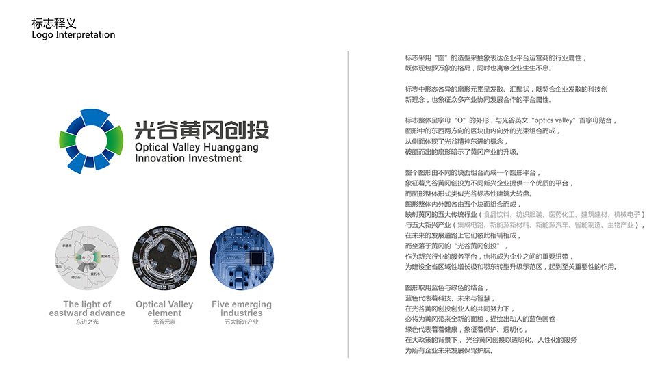 項目背景: 武漢光谷黃岡科創(chuàng)投資開發(fā)有限公司,2018年06月04日成立,注冊資本50000萬元,隸屬武漢高科集團,經(jīng)營范圍包括土地整理、開發(fā);城市基礎(chǔ)設(shè)施、公用事業(yè)、基礎(chǔ)產(chǎn)業(yè)的投資建設(shè)、運營;房地產(chǎn)開發(fā)經(jīng)營;建設(shè)項目管理、代理;工程項目管理、服務(wù)與咨詢;財政委托投資和項目管理;為企業(yè)資本運作提供投資咨詢;財務(wù)顧問服務(wù)。艾的爾設(shè)計承接其品牌VI設(shè)計,標志采用“圓”的造型來抽象表現(xiàn)企業(yè)運營商的行業(yè)屬性,整個圖形由不同的塊面組合而成一個圓形平臺,類似光谷標志性建筑大轉(zhuǎn)盤,內(nèi)外圓各由五個塊面組合而成,映射黃岡的五大傳統(tǒng)行業(yè)與五大新興產(chǎn)業(yè)。圖形取用藍色與綠色的結(jié)合,藍色代表著科技、未來與智慧。綠色代表著健康,象征著保護、透明化,為所有企業(yè)未來發(fā)展保駕護航,項目在有效時間內(nèi)獲得了客戶驗收。