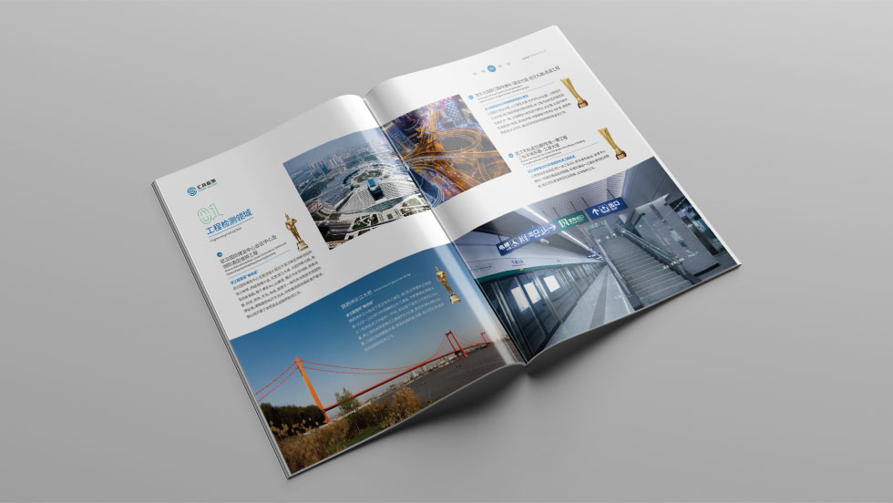 項(xiàng)目背景:武漢匯科質(zhì)量檢測(cè)有限責(zé)任公司前身為1984年成立的市政工程實(shí)驗(yàn)室,公司成立于2006年,擁有建工檢測(cè)資質(zhì)6大項(xiàng),共400余個(gè)檢測(cè)參數(shù),工程勘察乙級(jí)資質(zhì)4大項(xiàng)、測(cè)繪乙級(jí)資質(zhì)、排水管道與評(píng)估資質(zhì),匯科公司始終致力于建設(shè)工程的質(zhì)量檢測(cè)和技術(shù)創(chuàng)新,持續(xù)推進(jìn)產(chǎn)學(xué)研應(yīng)用轉(zhuǎn)化,至今已為數(shù)以千計(jì)的建設(shè)工程項(xiàng)目提供優(yōu)質(zhì)檢測(cè)服務(wù),并且為建設(shè)單位提供多樣化的安全文明標(biāo)準(zhǔn)化產(chǎn)品和服務(wù)。 匯科公司從上世紀(jì)80年代末已開(kāi)展見(jiàn)證取樣檢測(cè),現(xiàn)業(yè)務(wù)領(lǐng)域已逐漸從單一的見(jiàn)證取樣檢測(cè)資質(zhì),拓展到建設(shè)工程檢測(cè)各方面,構(gòu)筑了工程檢測(cè)、勘察領(lǐng)域、智慧檢測(cè)領(lǐng)域、協(xié)同發(fā)展衍生領(lǐng)域四大業(yè)務(wù)板塊。匯科公司前身實(shí)驗(yàn)室曾獲得2004年度湖北省建設(shè)工程質(zhì)量檢測(cè)先進(jìn)示范站、匯科公司擁有AAA企業(yè)信用等級(jí)證書,榮評(píng)過(guò)市、省、全國(guó)“守合同重信用企業(yè)”、2018-2019年度武漢建筑工程質(zhì)量檢測(cè)機(jī)構(gòu)“五星級(jí)檢測(cè)單位”、全國(guó)高新技術(shù)企業(yè)、武漢建筑業(yè)“抗疫先進(jìn)企業(yè)”等榮譽(yù)。目前,匯科公司正在強(qiáng)化建設(shè)工程全產(chǎn)業(yè)鏈服務(wù)能力,未來(lái),檢測(cè)公司將繼續(xù)開(kāi)拓消防、房屋安全鑒定等領(lǐng)域,并進(jìn)一步推進(jìn)產(chǎn)學(xué)研應(yīng)用轉(zhuǎn)化和智慧城市運(yùn)維平臺(tái)建設(shè),爭(zhēng)做智慧檢測(cè)專家。艾的爾承接其畫冊(cè)設(shè)計(jì)制作,成立品牌設(shè)計(jì)小組,與企業(yè)進(jìn)行深入溝通,明確企業(yè)對(duì)于畫冊(cè)設(shè)計(jì)的需求,封面封底采用藍(lán)色為主體色,藍(lán)色寓意穩(wěn)重、大氣、誠(chéng)信。將企業(yè)簡(jiǎn)介、核心設(shè)備、團(tuán)隊(duì)建設(shè)展現(xiàn)出來(lái)。