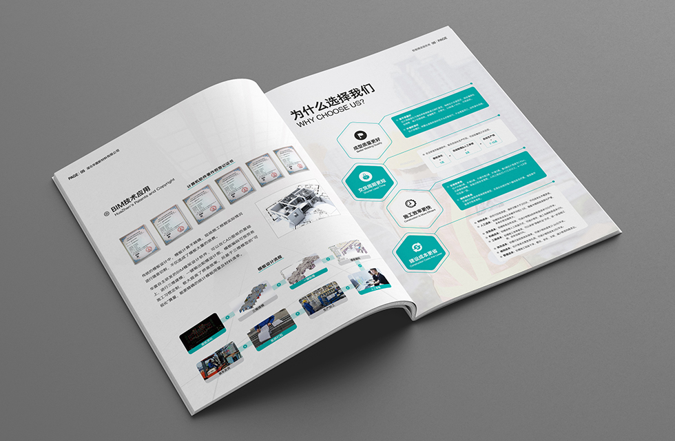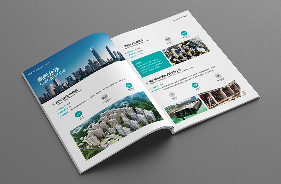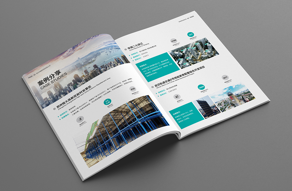 項目背景:華震集團是一家以經(jīng)營建筑材料為主,集建筑總包、勞務(wù)大清包、鋼材商砼貿(mào)易、新材料研發(fā)制造、鋼材大小料加工、倉儲和物流為一體的中大型企業(yè)。集團建有黨組織、工會、公益志愿組織和完善的企業(yè)文化建設(shè)體系。艾的爾設(shè)計接受其委托,承接畫冊設(shè)計項目。在畫冊設(shè)計、創(chuàng)意的過程中,設(shè)計師通過對行業(yè)屬性進行深入地了解,在畫冊設(shè)計、創(chuàng)意的過程中,重點在表現(xiàn)企業(yè)主要是從事建筑總包,建筑材料供應(yīng)等服務(wù),因此在設(shè)計中以藝術(shù)的手法表現(xiàn)企業(yè)的行業(yè)屬性。在畫冊色封面設(shè)計中,設(shè)計師考慮到華震集團的企業(yè)定位是智能建造服務(wù)商,生產(chǎn)理念上突出智能化、標準化、環(huán)保化,因此色彩選擇藍綠色系,給人環(huán)保和智慧的觀感,給人一種平和恬靜的感官效果,封面中建筑樓體直接展現(xiàn)華震的業(yè)務(wù)范圍,建筑類(地下室、辦公體系建筑、住宅體系建筑)建造服務(wù),作為企業(yè)和項目畫冊,能夠開門見山傳達畫冊的類別和價值。從封面中都彰顯出企業(yè)的實力強大,沉穩(wěn)細致。在內(nèi)頁的設(shè)計中,按黃金分割比例設(shè)計,標題與文字的板塊相互呼應(yīng)文圖分布疏密有致,整個版面簡潔優(yōu)雅。大膽留白,恰到好處的留白使畫冊設(shè)計版面注入了生機,版面設(shè)計中有部分透明化的背景圖,是整個畫面不死板呆滯,整體給人大氣、智慧的印象。整個畫冊傳達出了沉穩(wěn)、專業(yè)的視覺形象,對塑造企業(yè)專業(yè)、實力的形象有極大的作用。