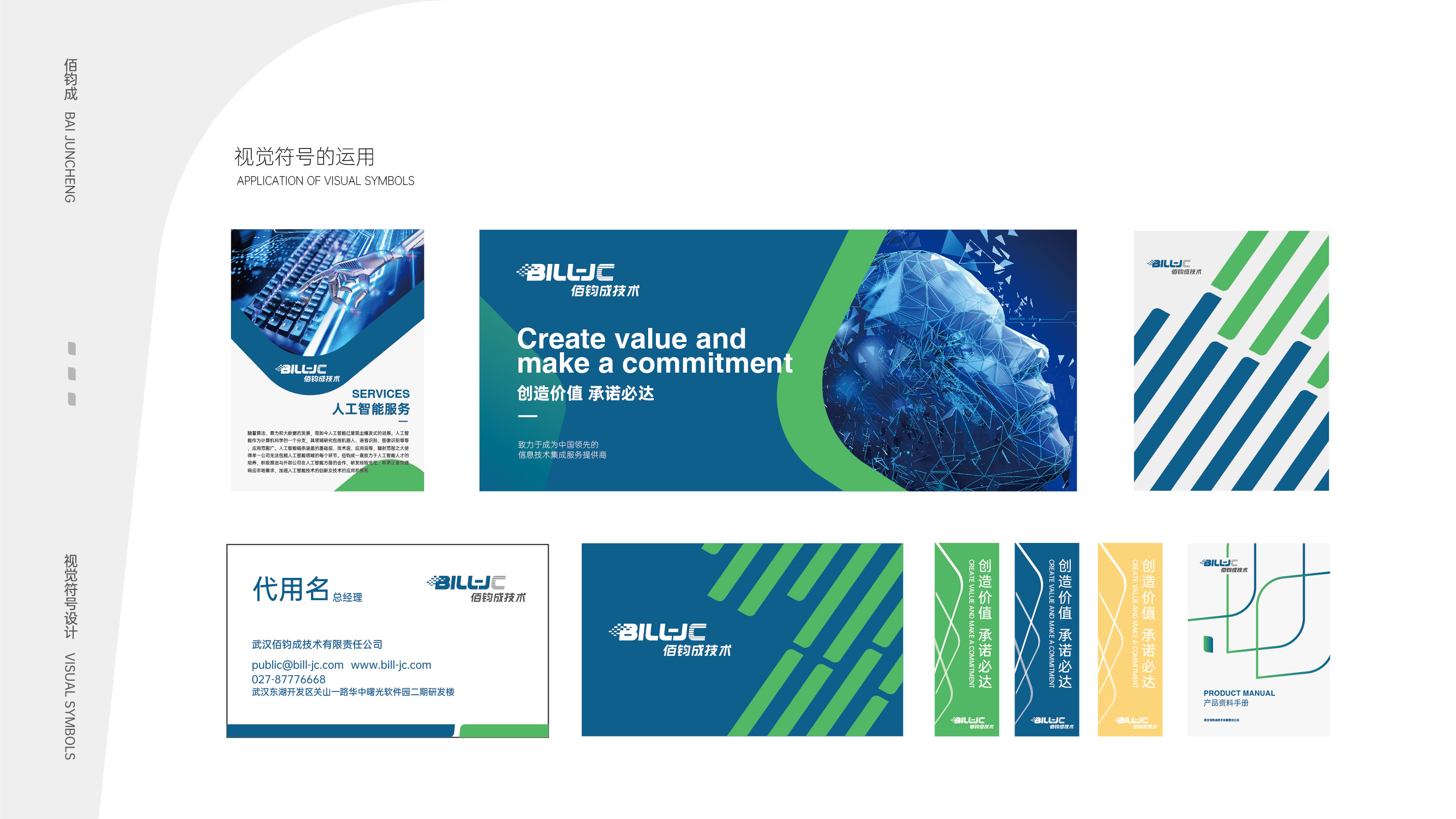 項目背景:武漢佰鈞成技術(shù)有限責(zé)任公司(以下簡稱“佰鈞成”)致力成為國際一流的信息技術(shù)集成服務(wù)提供商,總部位于中國科教之城武漢。經(jīng)過多年積累,佰鈞成擁有了豐富的大型項目管理經(jīng)驗,在高科技、通信、能源、金融、制造等行業(yè)形成了獨具特色的行業(yè)解決方案。艾的爾團(tuán)隊承接該項目,由品牌總監(jiān)牽頭,主動與佰鈞成公司對接,成立品牌VI設(shè)計小組。與客戶深入溝通后,企業(yè)logo設(shè)計寓意比較明確,圍繞著凝聚力、規(guī)范化兩個平衡點讓字母之間更加緊湊,更像一個整體,整個文字無處不透露著干勁,像一輛動力十足的火車,不斷前行,團(tuán)隊之間互助互愛,圍繞著同一個目標(biāo)共同進(jìn)步,英文字形傾斜度保持原有度數(shù)--6度,具有傳承之意,而且6這個數(shù)字從古至今也代表六木大順,寓意著佰鈞成未來發(fā)展一路高歌,中文字體的傾斜度數(shù)為一-10度,寓意著佰鈞成在專業(yè)上秉承著十全十美的態(tài)度去對待。
