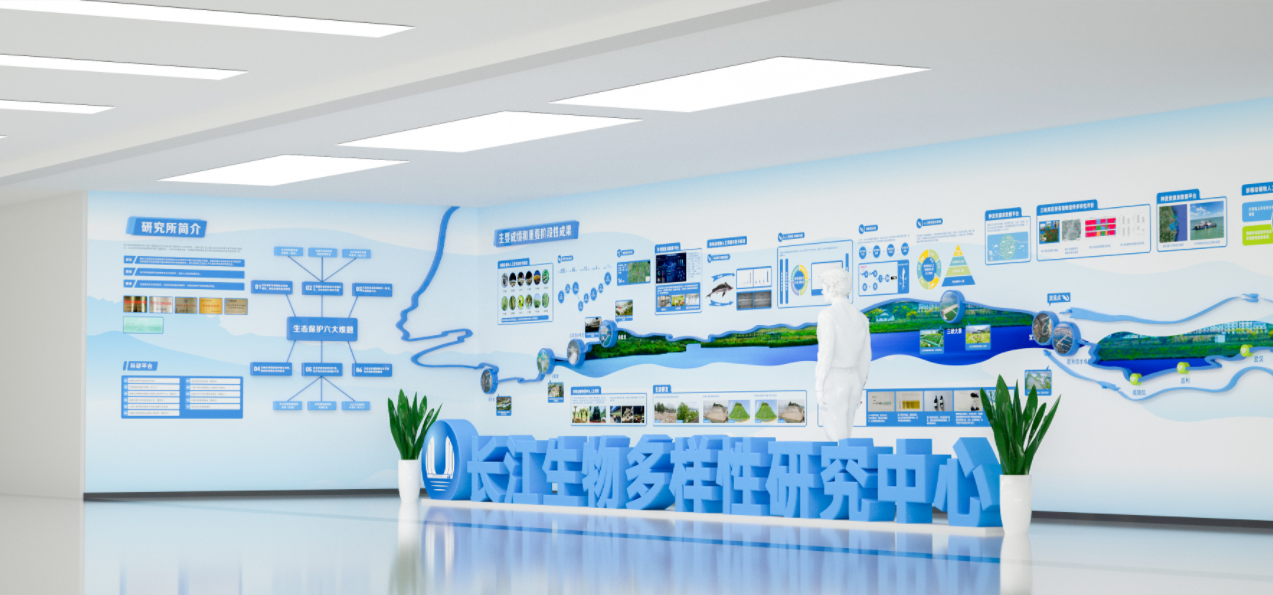項目背景:長江生物多樣性研究中心是三峽集團長江生態(tài)環(huán)境工程研究中心內(nèi)設機構,主要負責水利工程與水生生態(tài)環(huán)境協(xié)調(diào)可持續(xù)發(fā)展研究、長江經(jīng)濟帶生物多樣性保護重大課題研究,以及生態(tài)修復技術、珍稀瀕危物種繁育技術和生物多樣性保護技術研發(fā)等工作。艾的爾品牌設計承接其文化墻設計,與客戶深入溝通后,決定整體形式以長江流實際流向為主軸,展示生物多樣性中心基地分布、重要科研和技術成果等,受到客戶的一致好評。