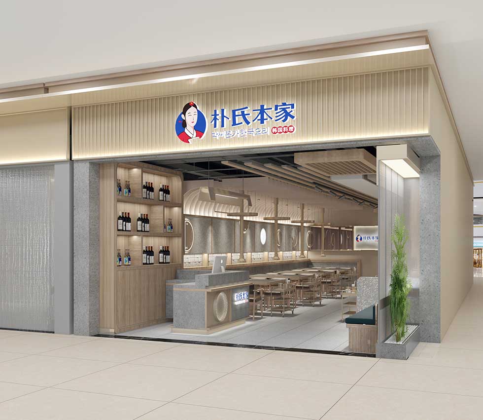 項目背景:樸氏本家是一個以炭烤五花肉、特色湯鍋、風味拌飯等為主的家族傳統(tǒng)韓國美食。艾的爾設計承接其品牌VI設計,成立品牌VI設計小組7人:品牌總監(jiān)1名、設計總監(jiān)1名、資深設計師4名、文案策劃1名。了解品牌的本質(zhì)需求、商業(yè)目的、目標消費群體審美偏好、行業(yè)與品類特性及品牌文化。本方案圖形家文字的組合方式詮釋品牌LOGO,圖形部分是一個微笑服務的韓國傳統(tǒng)婦女的形象,有著韓國的傳統(tǒng)發(fā)型、韓國的傳統(tǒng)服飾、頭上戴著韓國的木槿花,代表著樸氏本家做的韓國料理歷史傳承悠久,極具傳統(tǒng)特色。字體的設計筆觸有利無比,充滿活力,體現(xiàn)了餐廳出品有度、有規(guī)則且穩(wěn)定。文字旁邊的小圖形適當點綴,顏色也選取了韓國太極中的中的紅色和藍色相間,韓國傳統(tǒng)元素的加入,充分體現(xiàn)了地域特色和文化氛圍??臻g設計以原木為主材配合灰色大理石,讓顧客體驗回歸自然的感覺,體驗原生態(tài),親和力更好。