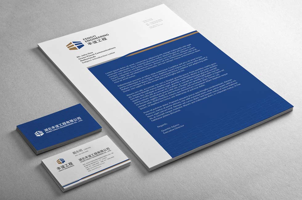 項目背景:湖北豐誼工程有限公司經(jīng)營范圍包括房屋建筑工程、市政公用工程、水利水電工程等,擁有建筑工程施工總承包貳級、環(huán)保工程專業(yè)承包叁級資質(zhì)。艾的爾設(shè)計承接其VI設(shè)計,成立品牌VI設(shè)計小組7人,及時了解客戶需求變更調(diào)整方案,有效的完成項目,讓項目最終完美呈現(xiàn)。其標(biāo)志由「F、E」變形而來,融合設(shè)計而成的建筑外形傳達(dá)出了豐誼工程的行業(yè)屬性,線條簡潔,動態(tài)剛勁有力,代表旺盛的生命力和勃勃生機(jī);整體造型融入“豐”字結(jié)構(gòu),既代表豐誼的品牌符號,同時也寓意企業(yè)繁榮興盛的美好愿望。標(biāo)志負(fù)形又酷似一架騰空而起飛機(jī),象征公司事業(yè)騰飛、業(yè)務(wù)發(fā)展蒸蒸日上。色彩由藍(lán)色、土黃色相結(jié)合,藍(lán)色象征工程建造,土黃色象征建筑行業(yè)。