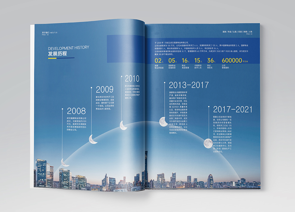 項目背景:武漢展鵬物業(yè)是一家運用現(xiàn)代管理科學(xué)和先進(jìn)技術(shù)對物業(yè)實施統(tǒng)一的專業(yè)化管理的公司,艾的爾設(shè)計接受其委托,承接畫冊設(shè)計項目。在畫冊設(shè)計、創(chuàng)意的過程中,設(shè)計師通過對行業(yè)屬性進(jìn)行深入地了解,根據(jù)企業(yè)屬性,進(jìn)行了畫冊設(shè)計、創(chuàng)意。在畫冊設(shè)計中,設(shè)計師突出專業(yè)、科學(xué)與高效的同時體現(xiàn)服務(wù)業(yè)的行業(yè)屬性,因此大面積的藍(lán)與點綴的黃成為畫冊主體顏色,封面以武漢的黃鶴樓為主展現(xiàn)展鵬物業(yè)在武漢服務(wù)與廣大業(yè)主與客戶的服務(wù)業(yè)屬性。整體強化每一板塊的名稱,突出板塊的重點,區(qū)域區(qū)分簡潔明了,能讀者快速了解公司