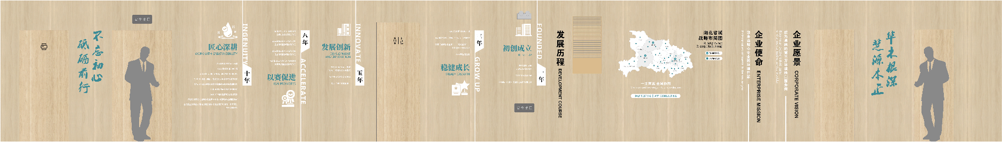 項目背景:華正環(huán)境是一家專業(yè)從事環(huán)境檢測并基于環(huán)境檢測開展環(huán)境咨詢服務(wù)的高新技術(shù)企業(yè), 成立于2013年,總部位于武漢市東湖高新技術(shù)開發(fā)區(qū)。旗下設(shè)有武漢華正、江西慧正、寧夏華正、宜昌華正、襄陽華正等5個標(biāo)準(zhǔn)化實驗室以及華正環(huán)境研究院、湖北葦杭環(huán)??萍加邢薰镜葘I(yè)的環(huán)境咨詢服務(wù)機(jī)構(gòu)。 經(jīng)過近10年的發(fā)展,“華正環(huán)境”依托自有具有規(guī)?;牡谌江h(huán)境檢測平臺,構(gòu)建特色鮮明、優(yōu)勢互補(bǔ)的環(huán)境檢測和環(huán)境咨詢“雙輪驅(qū)動(T+C)”發(fā)展模式。全方位為政府、園區(qū)、企業(yè)提供 “一站式”第三方環(huán)境綜合服務(wù),統(tǒng)籌解決各方面環(huán)境問題。服務(wù)范圍覆蓋華中及中西部地區(qū)多個省份,為近萬家客戶提供各類“環(huán)境檢測”和“環(huán)境咨詢” 綜合解決方案。艾的爾品牌設(shè)計承接其文化墻設(shè)計,與客戶深入溝通后,結(jié)合企業(yè)自身特點,從企業(yè)簡介,發(fā)展歷程,使命,愿景,榮譽(yù),公益等出發(fā),內(nèi)容簡潔明了、主題突出。